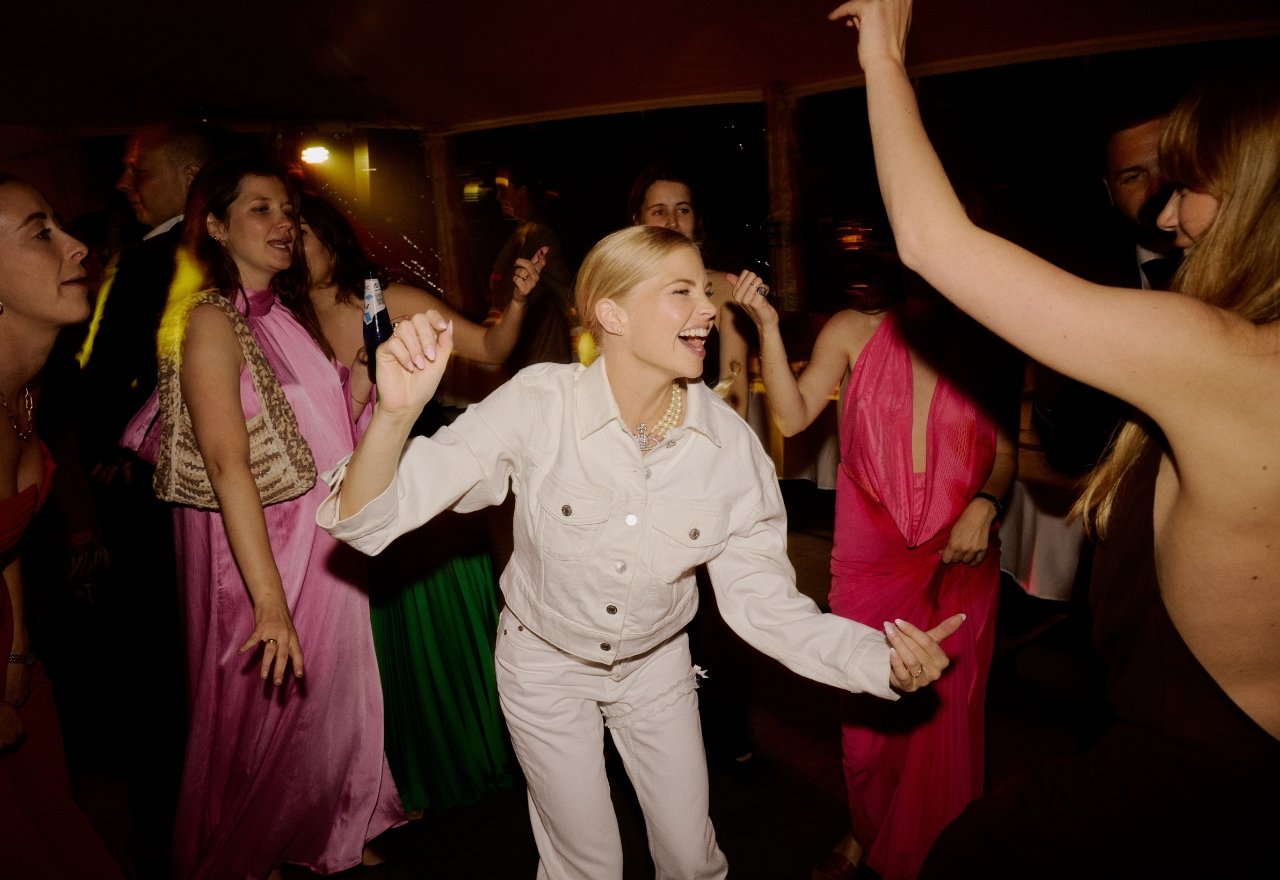 “På en junidag blev vi gift i Sankt Johannes Kirken lige ved siden af, hvor vi bor på Nørrebro. Vi valgte at holde receptionen, middagen og festen hjemme hos min svigermor i Hornbæk, som ejer en skøn gård med gamle staldbygninger, en fin gårdsplads og en fantastisk udsigt til flere hektar mark. Vi havde lejet et stort telt med kig til den smukke natur, hvor middagen og festen fandt sted. Vi havde også ombygget en af de gamle stalde til en bar, hvor vi primært spillede country musik, sad på halmballer og fik forfriskninger under festen. Det gav en helt unik stemning, at folk kunne gå ind i “barladen” og bestille en drink, snakke og hvile dansefødderne, inden de begav sig ind på dansegulvet i teltet igen. Det var en fest i festen.”