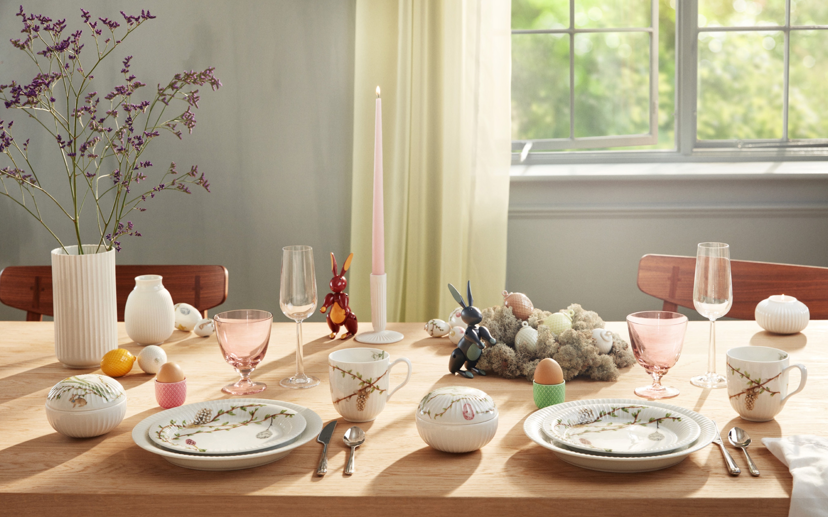 Gør påskens frokoster og middage til noget særligt med en borddækning, der enten komplimenterer din stil eller udfordrer den på nye måder. Her får du inspiration til tre forskellige påskeborde, der hver især sætter scenen med deres unikke udtryk.