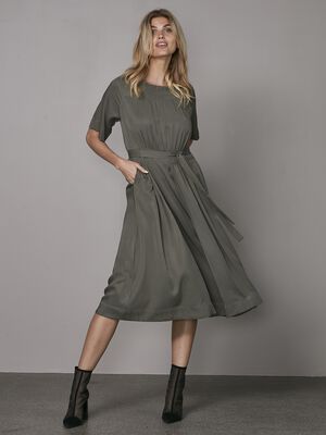 Denne elegante kjole er lavet af et blødt, ferskenvasket materiale, der sikrer både luksus og komfort. De fine detaljer som f.eks. den smockede halsudskæring og det aftagelige bindebælte i taljen giver kjolen et feminint og smukt look. Med praktiske sidelommer og en diskret lynlås bagpå nakken kombinerer den stil og funktionalitet på den bedste måde. Style kjolen med flade sko for et afslappet look, eller vælg hæle og enkle smykker for en elegant og sofistikeret stil. ((Produktmålinger (Størrelse XS / S / M / L / XL / XXL)- Brystmålinger- XS- 104 / S- 108 / M- 112 / L- 118 / XL- 124 / XXL- 130 talje- XS- 76 / S- 80 / M- 84 / L- 90 / XL- 96 / XXL- 102 Længde tilbage- XS- 117 / S- 1118.5 / M- 120 / L- 12121.5 / XL- 1233 / 15000000000000000000000 Hvert tankevækkende køb er en kærlighedserklæring til vores planet, hvor færre afkast betyder mindre CO2 og et renere miljø. Med venlig hilsen Team N Modellen er 180 cm høj og bærer størrelse S.)) (((- Smockede detaljer ved halsudskæringen. - Praktiske sidelommer. - Lynlås bagpå halsen.)))